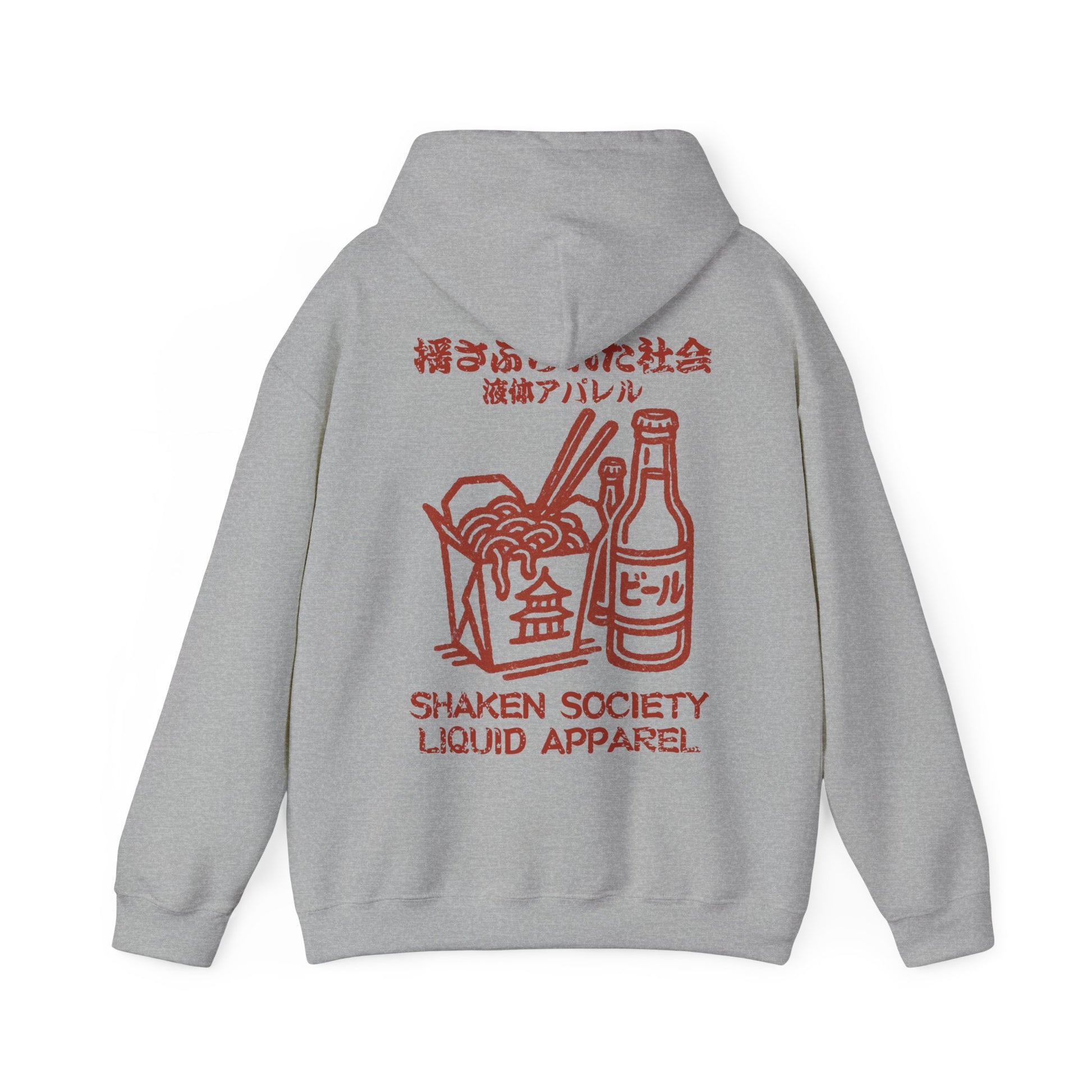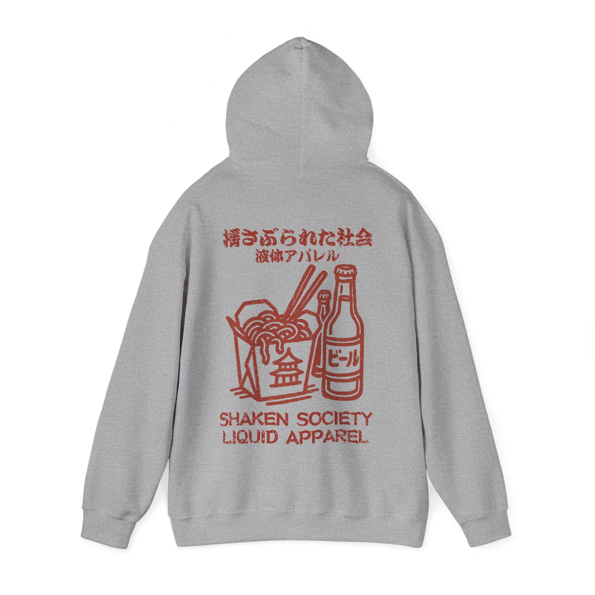 The Balanced Diet Heavyweight Hoodie celebrates the true essentials of a bartender’s day off: takeout noodles and a cold beer — preferably consumed horizontally, lights off, TV on.